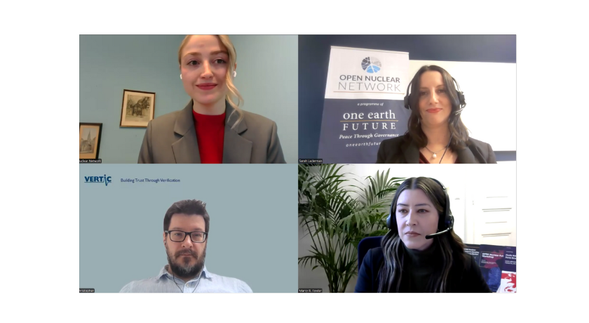 Moderated by Kseniia Pirnavskaia, ONN’s Engagement Coordinator, the session highlighted ONN’s unique methodological approaches to nuclear risk reduction. The discussion reflected ONN’s contributions to a broader international project led by the Verification Research, Training and Information Centre (VERTIC), James Martin Center for Nonproliferation Studies (CNS) and Royal United Services Institute for Defence and Security Studies (RUSI), funded by Global Affairs Canada.